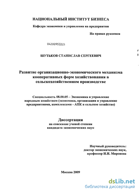 - расширены теоретические и методологические основы социально-экономического понятия сущности организационно-экономического механизма кооперативных форм хозяйствования в сельскохозяйственном производстве, условия их развития;