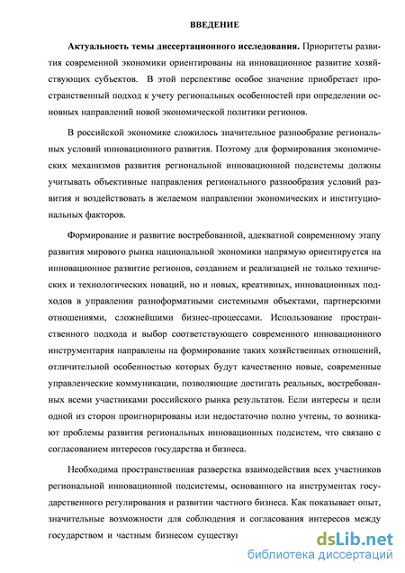Актуальность темы диссертационного исследования. Приоритеты развития современной экономики ориентированы на инновационное развитие хозяйствующих субъектов. В этой перспективе особое значение приобретает пространственный подход к учету региональных особенностей при определении основных направлений новой экономической политики регионов.