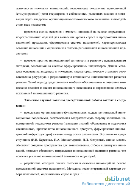обобщены теоретические основы становления и развития инновационной экономики региона, что позволило синтезировать различные точки зрения в развитии региональной инновационной подсистемы, уточнить определение подсистемы и выявить основные принципы ее эффективного построения, заключающиеся в целенаправленности, комплексности, социальности, адаптивности, приоритетности ключевых компетенций, включающие сохранение приоритетной (стимулирующей) роли государства с соблюдением рыночных законов и мотивации через внедрение организационно-экономического механизма взаимодействия всех подсистем;
