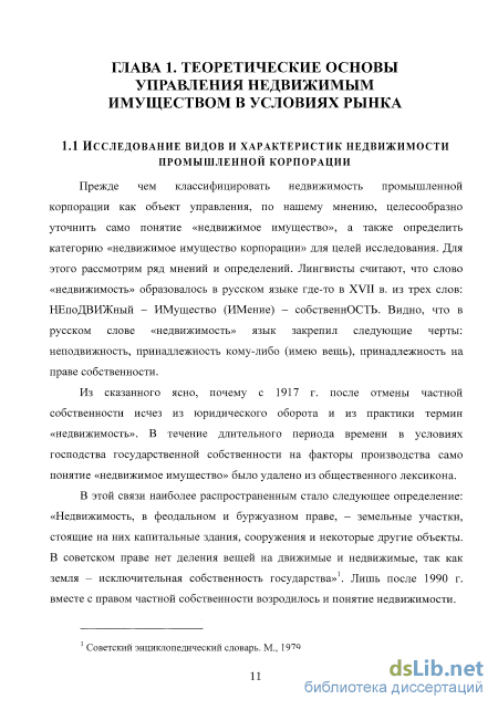 Глава 1. Теоретические основы управления недвижимым имуществом в условиях рынка 11
