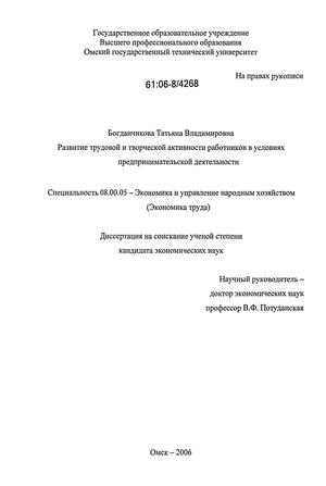 Структура работы. Структура диссертации соответствует поставленной цели и отражает логику рассматриваемых вопросов. Диссертация состоит из введения, трех глав, заключения, библиографического списка и 6 приложений. В изложении материала использована 41 таблица, 8 рисунков. Логика изложения материала соответствует последовательности решения задач диссертационного исследования. Так, в первой главе диссертации выявлена взаимозависимость и взаимообусловленность понятий трудовая и творческая активность, рассматриваются особенности творческого труда, подчеркивается роль и влияние предпринимательской среды на трудовую и творческую активность работника, рассмотрена связь этих понятий с трудовым потенциалом. Во второй главе рассмотрены различные аспекты трудовой активности и ее творческой составляющей, предложена дополненная