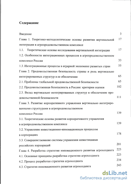 Объем и структура диссертации. Диссертационное исследование состоит из введения, пяти глав, заключения, списка использованной литературы и приложений. Объем диссертации составляет 387 страниц компьютерного текста. Во введении обоснована актуальность темы диссертационного исследования, проанализирована степень научной разработанности изучаемых проблем, определены предмет и объект исследования, сформулированы цель и задачи диссертационной работы, выделены основные положения, выносимые на защиту, дана характеристика научной новизны, теоретический и практической значимости работы. В первой главе «Теоретико - методологические основы развития вертикальной интеграции в агропродовольственном комплексе» исследованы фундаментальные научные подходы к анализу интеграционных процессов, выявлены особенности и преимущества вертикальной интеграции в агропродовольственном комплексе России. В главе рассматриваются принципы, цели, мотивы формирования вертикально интегрированных структур, обобщается опыт экономически развитых стран, анализируются модели агропромышленной интеграции. Вторая глава «Продовольственная безопасность страны и роль вертикально интегрированных структур в ее обеспечении» посвящена анализу проблем глобальной продовольственной безопасности и основным направлениям обеспечения продовольственной безопасности России, рассмотрены критерии ее оценки и предложен межотраслевой подход к анализу продовольственной безопасности. В главе рассмотрены факторы повышения эффективности функционирования сельского хозяйства как основы обеспечения продовольственной безопасности страны, выполнен анализ современного состояния агропродовольственного комплекса России, исследована роль вертикально интегрированных структур в обеспечении продовольственной безопасности. В третьей главе диссертационной работы «Развитие корпоративного управления вертикально интегрированными структурами в агропродовольственном комплексе России» представлен сравнительный анализ опыта зарубежных стран, рассматриваются особенности формирования и развития корпоративного управления в АПК, определены направления его совершенствования. Четвертая глава «Разработка стратегии инновационного развития агрохолдинга» посвящена обоснованию алгоритма разработки инновационной стратегии агрохолдинга, выполнена оценка роли стратегического менеджмента в развитии агрохолдинга. В пятой главе «Развитие организационно – экономического механизма управления агрохолдингом в условиях модернизации аграрной экономики» исследована структура управления современными агрохолдингами, рассмотрены направления ее совершенствования, представлена комплексная имитационная модель, позволяющая проводить экспресс-диагностику функционирования агрохолдинга. Разработана модель развития «типового» агорохолдинга. В заключении обобщены результаты диссертационного исследования, сделаны основные выводы и предложены авторские рекомендации, имеющие как теоретическое, так и практическое значение.