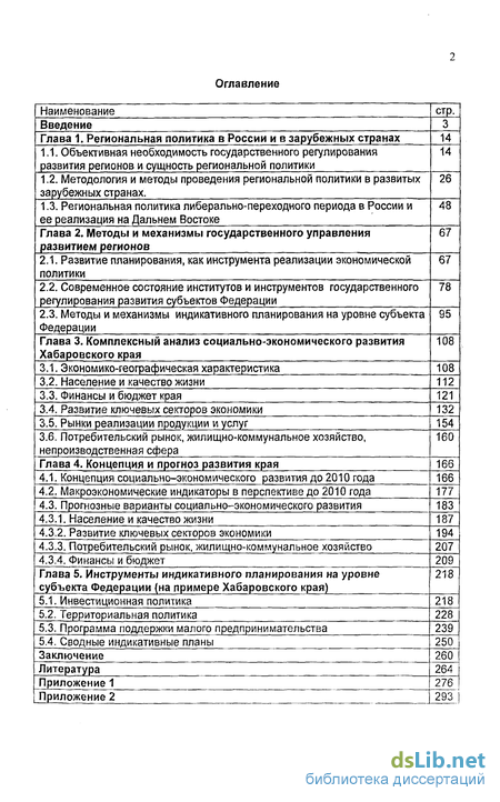 Структура диссертационной работы, состоящей из введения, пяти глав и заключения, соответствует логике исследования. В первой главе рассматриваются теоретические основы управления региональным развитием, как объективной необходимости в современном общественном воспроизводстве, а также генезис регионального управления и планирования в России и в развитых зарубежных странах. Во второй главе рассматриваются применяемые в России методология и методики регулирования регионального развития на обоих уровнях государственного управления - федеральном и субфедеральном (региональном). В третьей главе проведен анализ состояния и тенденций развития экономического, факторного и интеграционного потенциалов Хабаровского края и определены проблемы социально-экономического развития края, подлежащие решению планово-программными методами. Инструментами достижения намеченных целей являются плановые документы и механизмы, практическая работа которых показана в четвертой и пятой главах. В заключении формулируются основные выводы диссертационного исследования, суть которых раскрыта при рассмотрении содержания отдельных глав этой работы.
