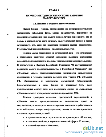 Глава 1 Научно-методические основы развития малого бизнеса 9