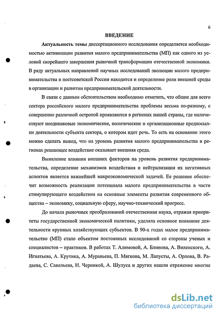 Актуальность темы диссертационного исследования определяется необходимостью активизации развития малого предпринимательства (МП) как одного из условий скорейшего завершения рыночной трансформации отечественной экономики. В ряду актуальных направлений научных исследований эволюции малого предпринимательства в постсоветской России находится и определение роли внешней среды в организации и развитии предпринимательской деятельности.