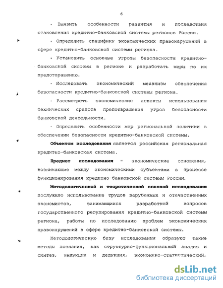Целью диссертационного исследования является исследование региональных особенностей обеспечения экономической безопасности в сфере кредитно-банковскои системы.