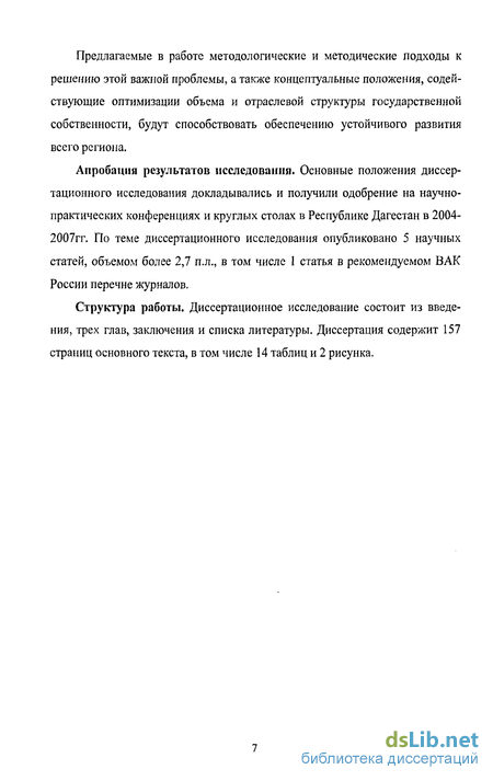 Апробация результатов исследования. Основные положения диссертационного исследования докладывались и получили одобрение на научно- практических конференциях и круглых столах в Республике Дагестан в 20042007гг. По теме диссертационного исследования опубликовано 5 научных статей, объемом более 2,7 п.л., в том числе 1 статья в рекомендуемом ВАК России перечне журналов.