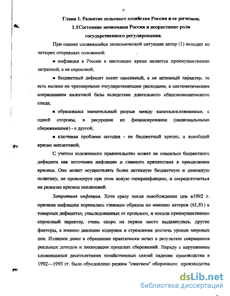 Глава 1. Развитие сельского хозяйства России и ее регионов 9