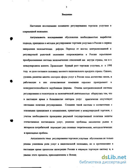 России рыночными реформами и как отражает условия интеграции России в мировую экономику. Очерчены масштабы и значимость изучаемой проблемы, свидетельствующие, что она является в существенной степени новой и актуальной для отечественной экономической науки, и что ее изучение способствует разумному реформированию системы регулирования торговли услугами в России, что окажет в свою очередь позитивное влияние на развитие макроэкономической ситуации. Введение содержит также краткую характеристику основ выполненного исследования.