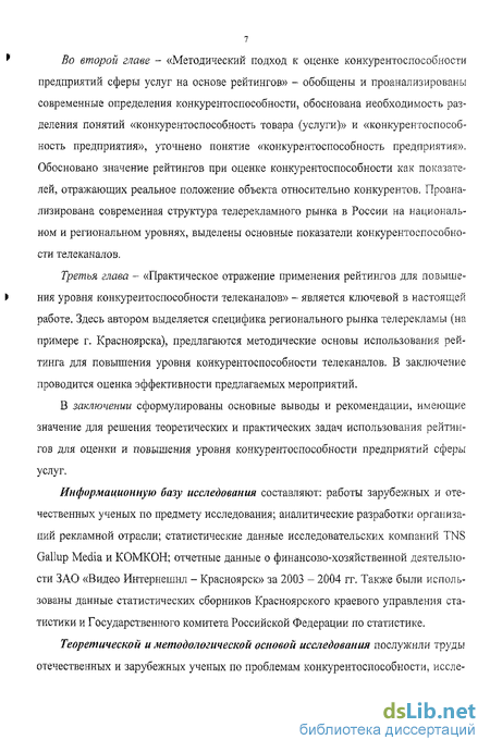 Теоретической и методологической основой исследования послужили труды отечественных и зарубежных ученых по проблемам конкурентоспособности, иссле дования телерекламного рынка, а также работы, посвященные изучению оценочных показателей.