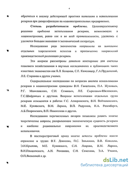 Содержательные исследования по вопросам анализа использования резервов в машиностроении проведены В.И. Ганштаком, П.А. Жуковым, Р.Г. Маниловским, СИ. Семиным, Л.Е. Сыркиным-Шкловским, Г.С.Шифриным и другими. Вопросы использования отдельных групп резервов освещаются в работах Г.С Алякринского, В.Н. Войтоловского, М.Е. Кунявского, В.М. Ларина, В.П. Радукина, И.А. Розенберга, А.Б.Покровского, В.П. Новоселова и других.