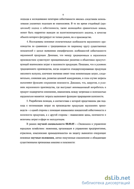 Проведенный анализ отечественных и зарубежных источников позволяет утверждать что тема себестоимосіи продукции рассматривается, преимущественно, в учебной и производственной литературе кроме того, акцент де чается на практическом аспекте, с политико-экономической точки зрения она рассмотрена недостаточно Кроме того, в последние 10-15 лет не публикуются работы посвященным ее экономико-теоретическим основам В исследованиях практически не рассматриваются вопросы, посвященные себестоимости наукоемкой продукции детально не освещено понятие наукоемких затрат, их структура, не проводятся различия между местом и ролью категории себестоимости в традиционном и наукоемком производствах, не рассматриваются методики управления себестоимостью наукоемкой продукции В то же время, следует отметить, что растет заинтересованность к наукоемким производствам, но нет крупных работ, где сопоставляется традиционное и наукоемкое производство, не исследованы вопросы взаимосвязи затрат и полезности в условиях той и другой системы хозяйствования Указанные об-стоятечьства подтверждают актуальность и научно-практическую значимость выбранной темы исследования