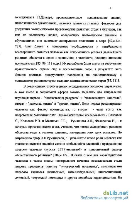 По мнению известного специалиста в области теории и практики менеджмента ІІДрукера, производительное использование знания, накопленного в организациях, является одним из главных факторов для удержания экономического превосходства развитых стран в будущем, так как по количеству людей, обладающих необходимым знанием и обучающихся, они занимают лидирующее положение в мире [47,с.234-235]. Еще ближе к пониманию необходимости и неизбежности всестороннего развития человека как непременного условия дальнейшего развития общества в целом и экономики, в частности, подошли японские исследователи [85, 86,111 и др.]. Их разработки были взяты на вооружение правительством страны еще в послевоенные годы, в результате чего Япония достигла лидирующего положения по экономическому и социальному развитию среди ведущих капиталистических стран [85,111].
