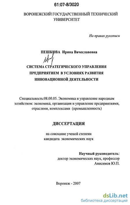 Проблемам стратегического управления предприятием посвящены труды И Ансоффа,К Боумэна, ОС Виханского, И А Гуниной, ВС Ефремова, AT Зуб, МИ Круглова,Г Минцберга, Е В Сибирской Несмотря на решение многих теоретических и прикладных задач, нашедших свое отражение в грудах представленных авторов, вопросы, связанные с необходимостью разработки системы стратегического управления предприятием в условиях развития инновационной деятельности исследованы недостаточно