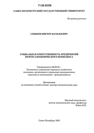 В диссертационной работе выявлены современные тенденции развития предприятий как социальных институтов глобальной постиндустриальной экономики и на этой основе представлена концепция их ответственности совместно с администрацией за социально-экономическое развитие соответствующих регионов.