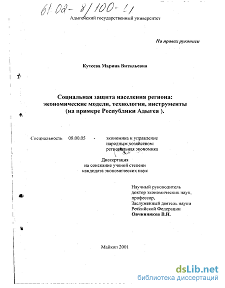 3. Экономические инструменты и технологии социальной защиты населения в регионе (Республика Адыгея) 120
