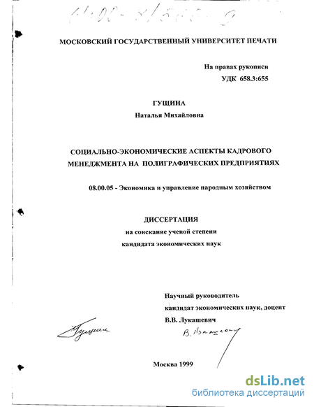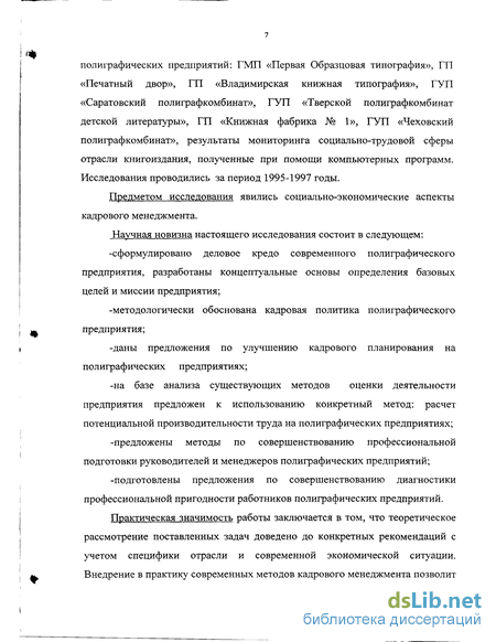 Цель и задачи исследования. Целью диссертационной работы является изучение социально-экономических аспектов кадрового менеджмента и разработка предложений по его совершенствованию на предприятиях полиграфической промышленности на основе исследования и анализа отечественного и зарубежного опыта.