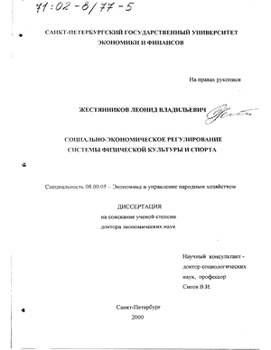 Структура диссертации включила главы, в которых изложены теоретические, методологические и методические обоснования создания и рационального использования социально-экономического регулирования системы физической культуры и спорта как на федеральном, так и на муниципальном уровнях.