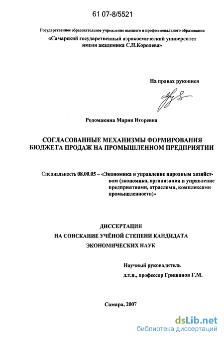 Материалы диссертационного исследования использованы в учебном процессе факультета «Экономика и управление» Самарского государственного аэрокосмического университета.