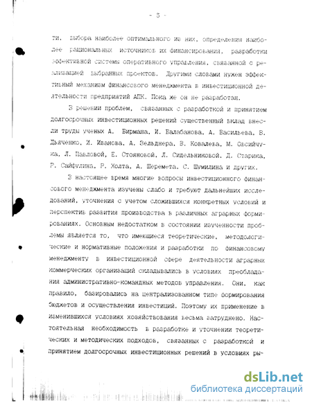 В настоящее время многие вопросы инвестиционного финансового менеджмента изучены слабо и требуют дальнейших исследований, уточнения с учетом сложившихся конкретных условий и перспектив развития производства в различных аграрных формированиях. Основным недостатком в состоянии изученности проблемы является то, что имеющиеся теоретические, методологические и нормативные положения и разработки по финансовому менеджменту в инвестиционной сфере деятельности аграрных коммерческих организаций складывались в условиях преобладания административно-командных методов управления. Они, как правило, базировались на централизованном типе формирования бюджетов и осуществления инвестиций. Поэтому их применение в изменившихся условиях хозяйствования весьма затруднено. Настоятельная необходимость в разработке и уточнении теоретических и методических подходов, связанных с разработкой и принятием долгосрочных инвестиционных решений в условиях ры ночной экономики, и обусловило выбор темы исследования.
