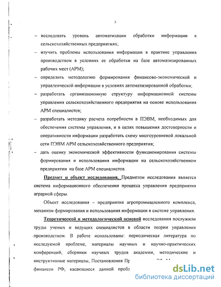 Объект исследования - предприятия агропромышленного комплекса, механизм формирования и использования информации в системе управления.
