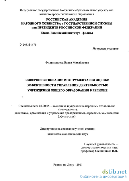 Апробация работы. Основные положения, результаты и выводы из диссертационного исследования использовались при оценке эффективности деятельности региональной администрации в управлении развитием сферы образования Октябрьского (сельского) района Ростовской области.