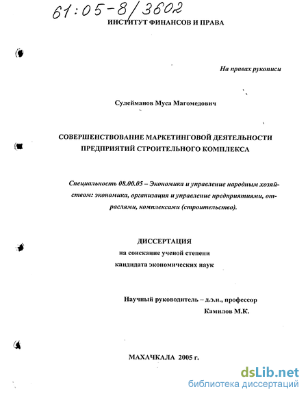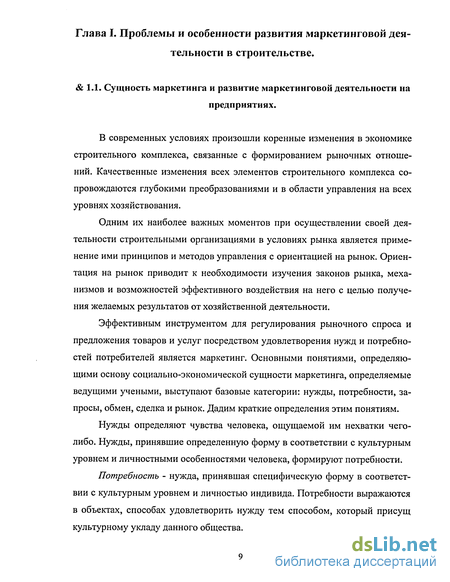 Поэтому исследования связанные с разработкой теоретических и методических основ развития маркетинговой деятельности предприятий строительного комплекса представляются весьма актуальными и своевременными, что и предопределило выбор темы диссертационной работы.
