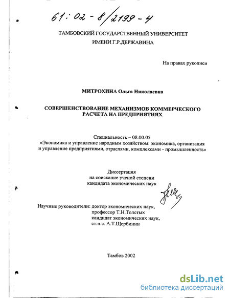 Цель диссертационного исследования. Целью диссертационной работы является исследование механизмов коммерческого расчета на