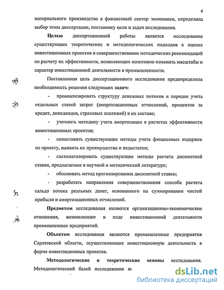Целью диссертационной работы является исследование существующих теоретических и методологических подходов к оценке инвестиционных проектов и совершенствование методических рекомендаций по расчету их эффективности, позволяющих позитивно изменить масштабы и характер инвестиционной деятельности в промышленности.
