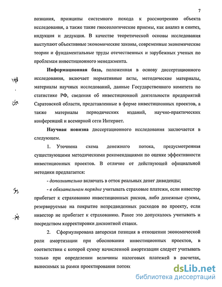 Информационная база, положенная в основу диссертационного исследования, включает нормативные акты, методические материалы, материалы научных исследований, данные Государственного комитета по статистике РФ, сведения об инвестиционной деятельности предприятий Саратовской области, представленные в форме инвестиционных проектов, а также материалы периодических изданий, научно-практических конференций и всемирной сети Интернет.