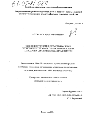 Апробация результатов. Разработанная система экономически эффективного обновления активной части основных средств сельхозтоваропроизводителей одобрена специалистами Министерства сельского хозяйства и продовольствия Ростовской области. Основные положения диссертационной работы докладывались и получили одобрение на ежегодных научно-практических конференциях ВЕИПТИМЭСХ и Ростовской-на-Дону государственной академии сельскохозяйственного машиностроения в 2000-2004 гг. По результатам исследований опубликовано 10 научных работ.