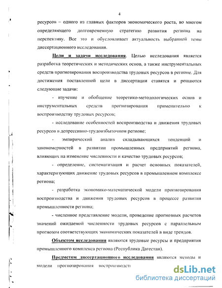Предметом диссертационного исследования являются методы и модели прогнозирования воспроизводства трудовых ресурсов и их использование в процессе реструктуризации хозяйственного комплекса региона в условиях становления рыночных отношений.