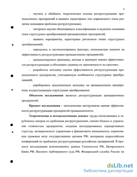 Целью диссертационного исследования является теоретическое обоснование и разработка методических инструментов оценки эффективности реструктуризации промышленных предприятий.
