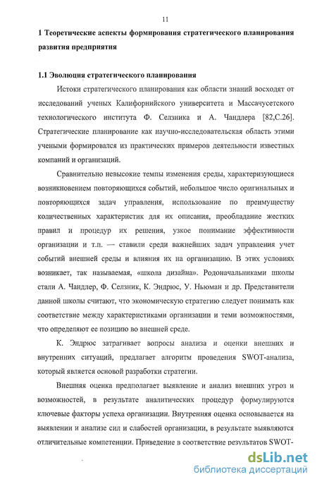 В первой главе диссертационного исследования, определен системный подход стратегического планирования развития промышленного предприятия, был выполнен обзор различных подходов к формированию стратегии развития промышленного предприятия, выявлены особенности эволюции учения о стратегическом планировании и используемых в связи с ним методов за рубежом и в нашей стране, рассмотрены модели процесса разработки конкурентной стратегии развития.