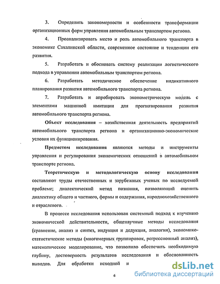 Предметом исследования являются методы и инструменты управления и регулирования экономических отношений в автомобильном транспорте региона.
