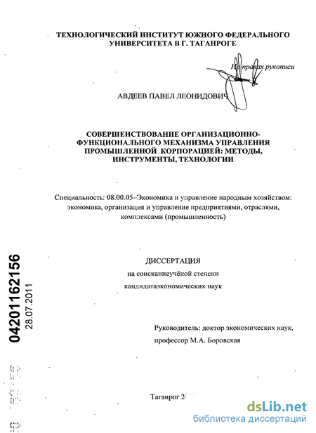 Апробация результатов исследования. Результаты диссертационного исследования докладывались на научно-теоретических и научно-практических конференциях, семинарах. Результаты работы и рекомендации автора по совершенствованию организационно-функционального механизмауправления промышленными корпорациями приняты к внедрению ОАО «Электроцинк», а также в учебный процесс Технологического института Южного федерального университета в г. Таганроге.