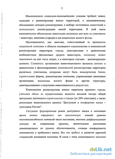 Изменившиеся социально-экономические условия? требуют новых подходов к реконструкции жилых территорий, к экономическому обоснованию методов реконструкции, к выбору источников инвестиций в комплексную реконструкцию жилой территории. В этой связи экономическое обоснование инвестиции актуально для всех ее участников - инвестора, заказчика (города) и для владельцев жилого фонда.