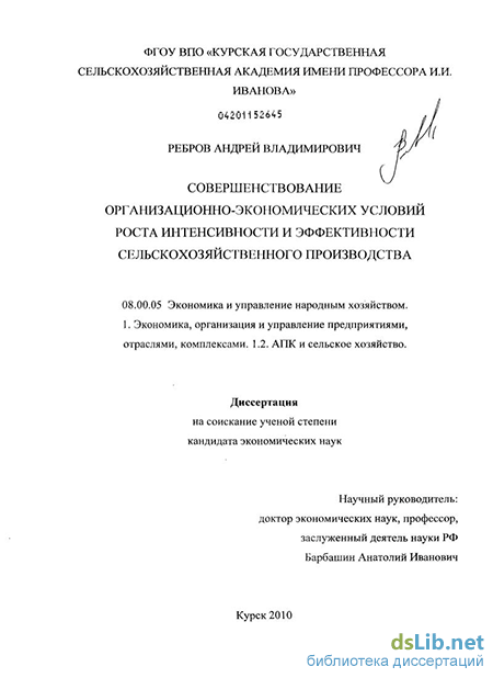 Специальности 08.00.05 Экономика и управление народным хозяйством. 1. Экономика, организация и управление предприятиями, отраслями, комплексами. 1.2. АПК и сельское хозяйство.