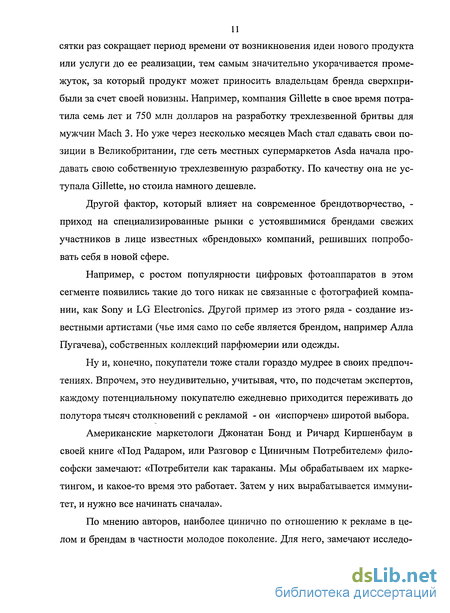 Актуальность темы исследования. В настоящее время в России и в мире обостряется борьба за покупателя. Производители и розничные сети стремятся обеспечить лояльность потребителя к своим товарам с целью повышения их конкурентоспособности. Растет теоретический и прикладной интерес к изучению процессов повышения эффективности использования рыночных инструментов продвижения, и в частности, брендинга, как метода позиционирования компании в конкурентной среде. Бренд является важным фактором конкуренции, поскольку обеспечивает защищенность товара от атак конкурентов и укрепляет позиции относительно товаров-заменителей. Известность бренда и, как следствие, самой фирмы укрепляет доверие партнеров, облегчает доступ фирмы к финансовым, информационным, человеческим и иным ресурсам. С помощью рекламы как бы перебрасывается мост непосредственно к потребителю, что вызывает спрос, который торговля вынуждена учитывать при формировании заказов (для российских фирм этот фактор пока не является доминирующим). Кроме того, формируется приверженность покупателей в отношении брендированных товаров, которая может снижать их чувствительность к цене, затруднять проникновение на рынок конкурирующих товаров, тем самым придавать фирме дополнительную рыночную силу. Кроме того, бренд облегчают покупателям выбор среди огромного разнообразия товаров, убеждают их в том, что при покупке товара они получат то же самое качество, что и прежде. По причине своего особого положения, особых предпочтений покупателей марочные товары менее подвержены колебаниям рынка.