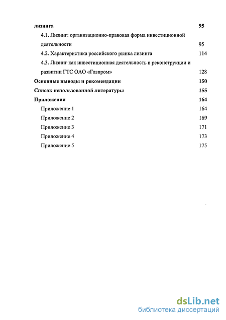 4.3. Лизинг как инвестиционная деятельность в реконструкции и развитии ГТС ОАО «Газпром» 128
