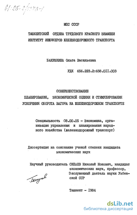 Работа выполнена на фактических материалах Среднеазиатской, Алма-Атинской,Западно-Казахстанской и Целинной железных дорог. Использованы также данные специального обследования оборота вагонов на дороге, методика проведения которого была разработана и апробирована при непосредственном участии
