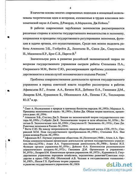 В работах современных зарубежных экономистов рассматриваются различные стороны и аспекты государственного вмешательства в экономику, направления и принципы государственного регулирования экономики, функции и задачи органов, его осуществляющих. Среди них можно выделить работы Аткинсона Э.Б., Гэлбрейта Д., Леонтьева В., Сакса Дж., Самуэльсона П., Макконела К.Р., Брю С.Л., Парето В.2
