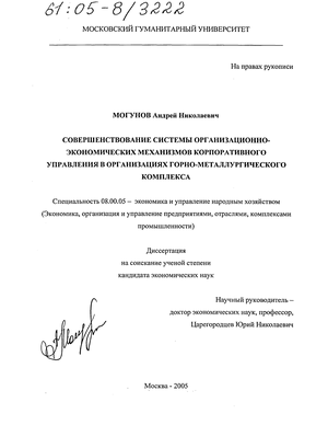 Практическая значимость. На основе разработанных автором положений сформулированы практические рекомендации корпоративным структурам по созданию и развитию организационно-экономических механизмов управления.