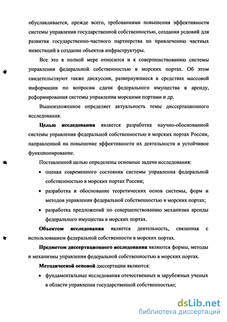 Предметом диссертационного исследования являются формы, методы и механизмы управления федеральной собственностью в морских портах.