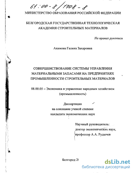 Цели и задачи исследования. Целью диссертационного исследования является разработка теоретических основ и научно обоснованных методов управления материальными запасами, а также их апробация на предприятиях промышленности строительных материалов.