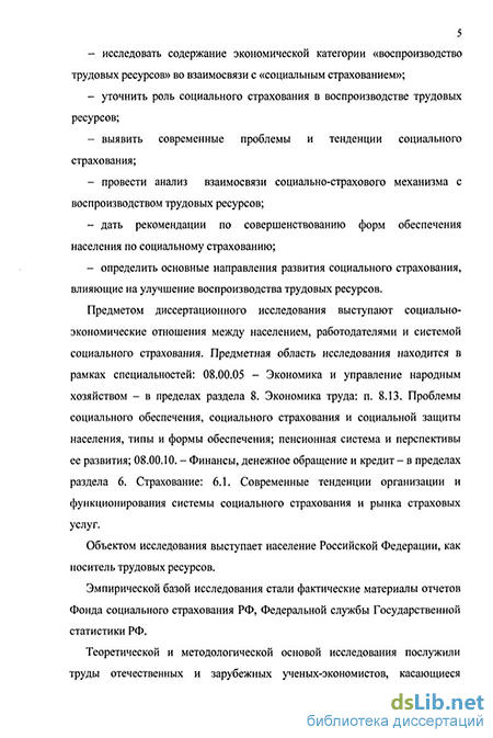Предметом диссертационного исследования выступают социально-экономические отношения между населением, работодателями и системой социального страхования Предметная область исследования находится в рамках специальностей 08 00 05 - Экономика и управление народным хозяйством - в пределах раздела 8 Экономика труда п 8 13 Проблемы социального обеспечения, социального страхования и социальной защиты населения, типы и формы обеспечения, пенсионная система и перспективы ее развития, 08 00 10 - Финансы, денежное обращение и кредит - в пределах раздела 6 Страхование 6 1 Современные тен-
