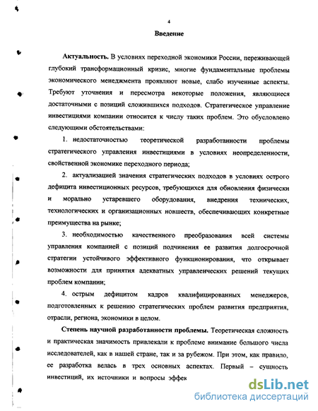 недостаточностью теоретической разработанности проблемы стратегического управления инвестициями в условиях неопределенности, свойственной экономике переходного периода;