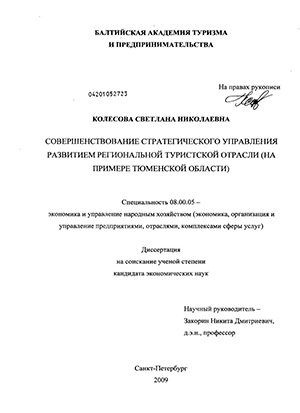 Объектом диссертационного исследования является стратегическое управление развитием региональной туристской отрасли Тюменской области как одной из наиболее перспективных отраслей экономики.