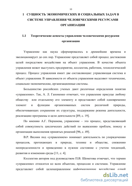 1 Сущность экономических и социальных задач в системе управления человеческими ресурсами организации 10