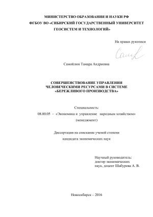 организаций. Это обусловлено тем, что в них осуществляются преобразования, направленные на повышение результативности их деятельности за счет рационального использования человеческих ресурсов. Исходя из этого, требуется разработка методов и инструментов управления человеческими ресурсами в соответствии с концепцией «бережливого производства», что и определяет актуальность темы диссертационного исследования.